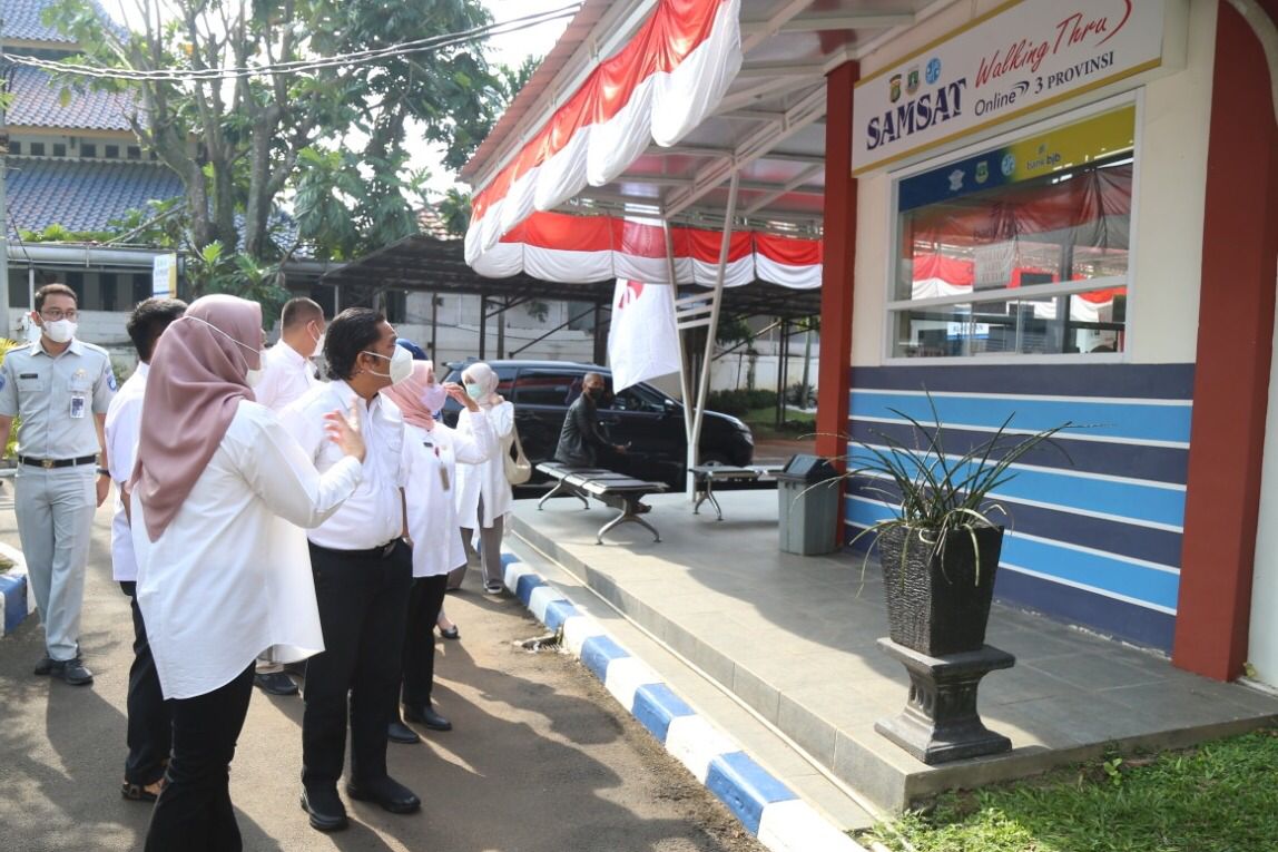 TANGSEL, (suarasiber.co.id) – Penjabat (Pj) Gubernur Banten Al Muktabar meninjau langsung pelayanan kepada masyarakat yang sedang melakukan pembayaran pajak maupun pelayanan yang lainnya di Unit Pelaksana Teknis (UPT) Sistem Administrasi Manunggal Satu Atap (Samsat) Serpong, Kota Tangerang Selatan, Rabu (21/9/2022).