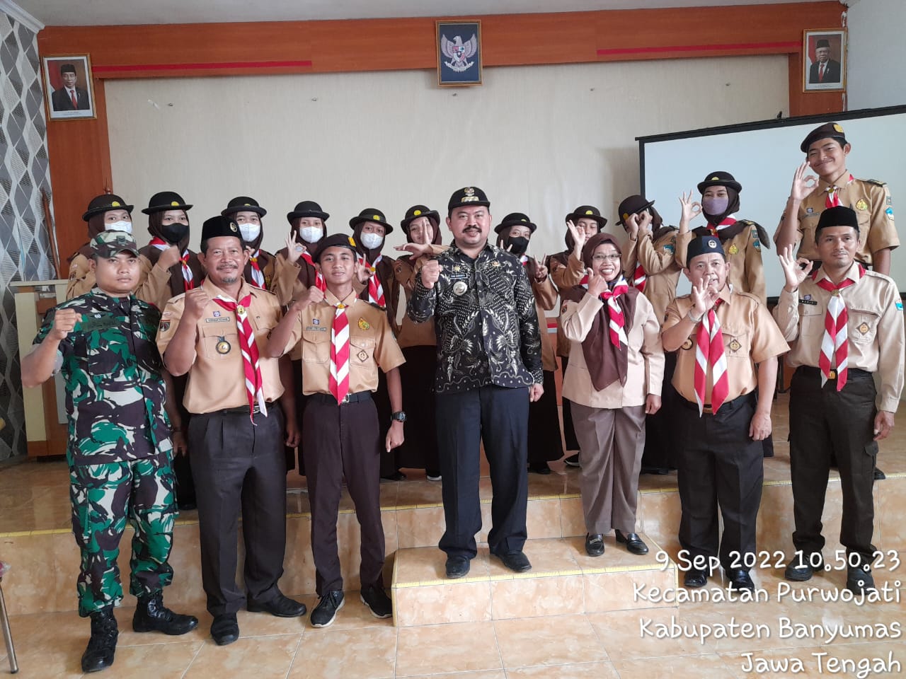 BANYUMAS (suarasiber.co.id) Sebanyak 36 Penegak dari Pangkalan SMKN 1 Purwojati dibekali ilmu tentang Kependudukan Keluarga Berencana dan Pembangunan Keluarga (KKBPK) dan Pembangunan Keluarga Berencana (Bangga Kencana) Jumat, 9 September 2022 di Aula Kantor Kecamatan Purwojati. Kegiatan tersebut sebagai bekal untuk anggota Pramuka Satuan Karya Keluarga Berencana (Saka Kencana) di Kampung KB Kecamatan Purwojati. Turut hadir dalam kegiatan Ketua Majelis Pembimbing Ranting dan anggota yang terdiri dari Danramil dan Kapolsek, Ketua Kwarran dan Pinsaka Kencana Kwarran Sumpiuh.