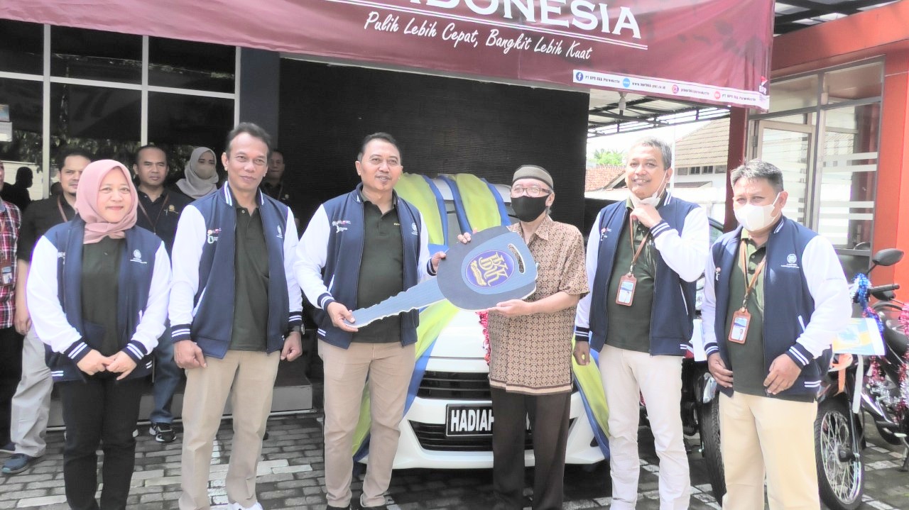 Gatot Tri Bintoro Wardianto, Nasabah Bank BPR BKK Purwokerto (Perseroda) memenangkan hadiah utama berupa mobil Daihatsu Ayla dalam gebyar penarikan undian Tamades tahun 2022. Penyerahan hadiah dilakukan oleh Direktur Utama BPR BKK Purwokerto Sugeng Prijono berserta unsur pimpinan, Jumat (23/9/2022) Kantor Pusat BPR BKK Purwokerto.