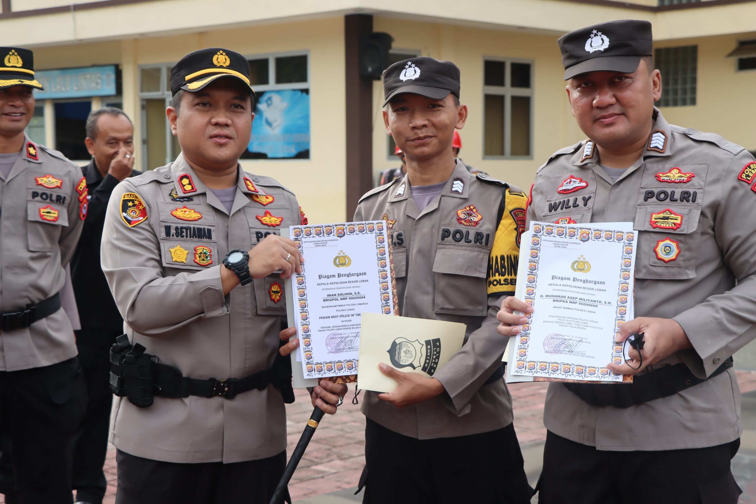 Berdasarkan Surat Keputusan Kapolres Lebak Nomor Kep/63/X/2022 tanggal 09 Oktober 2022 tentang Pemberian Penghargaan Best Police Of the Month Kategori Personil dengan Kinerja dan Dedikasi Terbaik tingkat Polres Lebak periode Bulan September 2022 diberikan kepada Brigpol Iman Solihin,SE Bhabinkamtibmas Polsek Cimarga dan Berdasarkan Surat Keputusan Kapolres Lebak Nomor Kep/64/X/2022 tanggal 09 Oktober 2022 tentang Pemberian Penghargaan terhadap Pelatih terbaik Polisi Cilik Polres Lebak sehingga menjadi juara 1 pada lomba Polisi Cilik tingkat Polda Banten diberikan kepada Bripka H. Asep Wiliyanto,SH Ba Sat Binmas Polres Lebak.