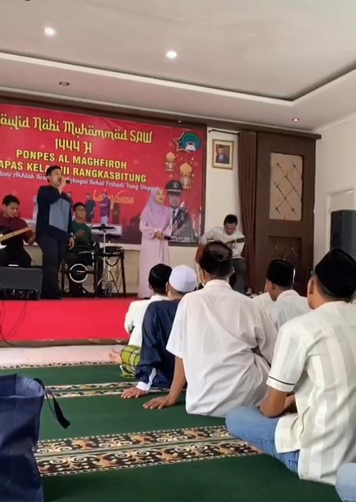 LEBAK,(suarasiber.co.id)- Lapas kelas III Rangkasbitung Kanwil Kemenkumham Banten memperingati hari Maulid Nabi Muhammad SAW, tampak ratusan Warga Binaan Pemasyarakatan kompak melantunkan sholawat rasul bersama Grup Band Latansana Band bertempat di aula Lapas Rangkasbitung, Selasa (11/10)