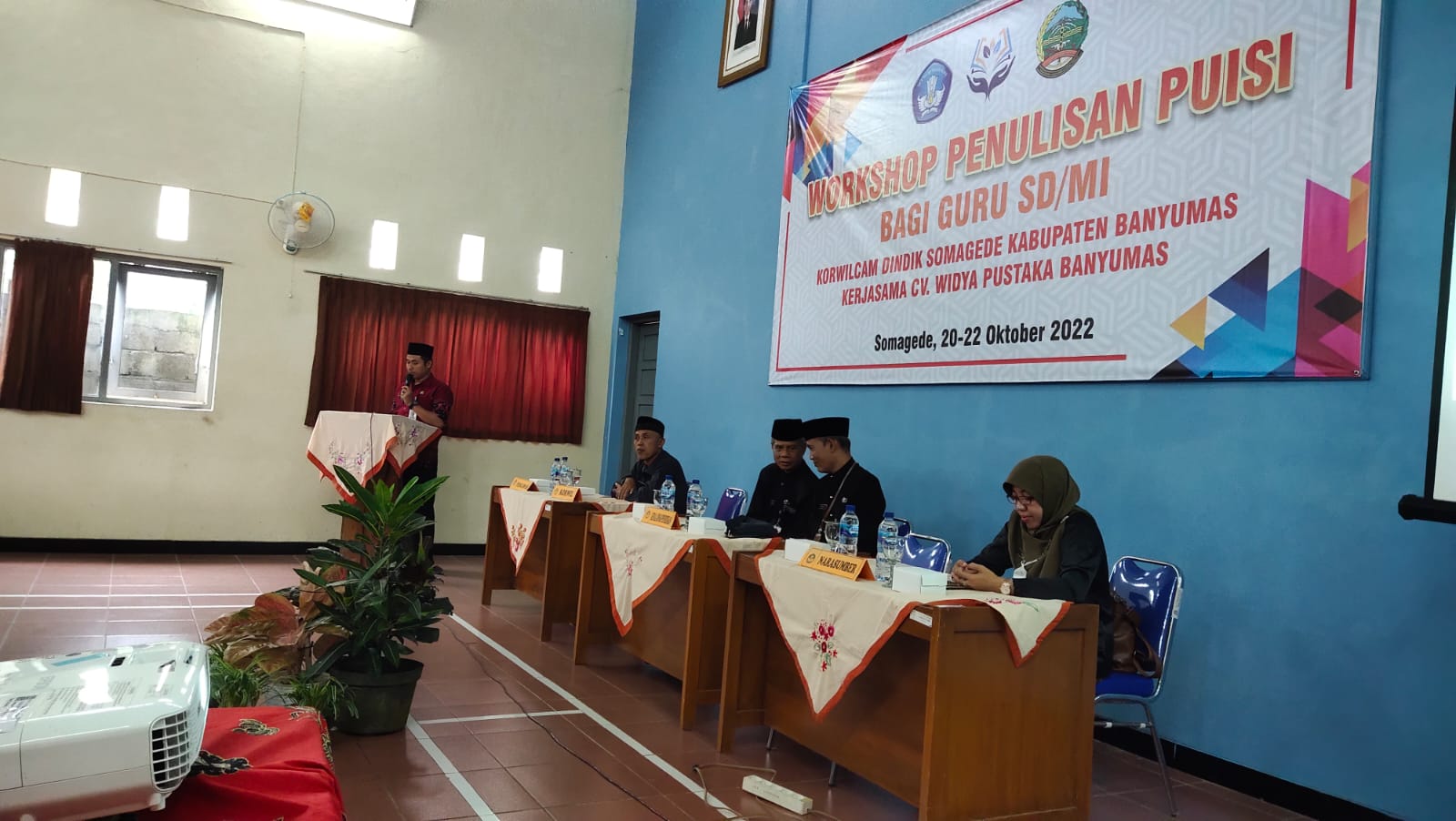 BANYUMAS (suarasiber.co.id) Bertempat di Aula Sasana Krida Wiyata, Kamis, (20/10/2022) sebanyak 44 (empat puluh empat ) guru di Korwilcam Dindik Somagede mengikuti Workshop Penulisan Puisi Bagi Guru SD/MI yang diselenggarakan oleh Kelompok Kerja Guru (KKG) yang ada di Somagede. Kegiatan yang terselenggara berkat kerja sama Kelompok Kerja Guru Bisma, Puntadewa, Ismaya dengan CV Widya Pustaka Banyumas berlangsung selama tiga hari.