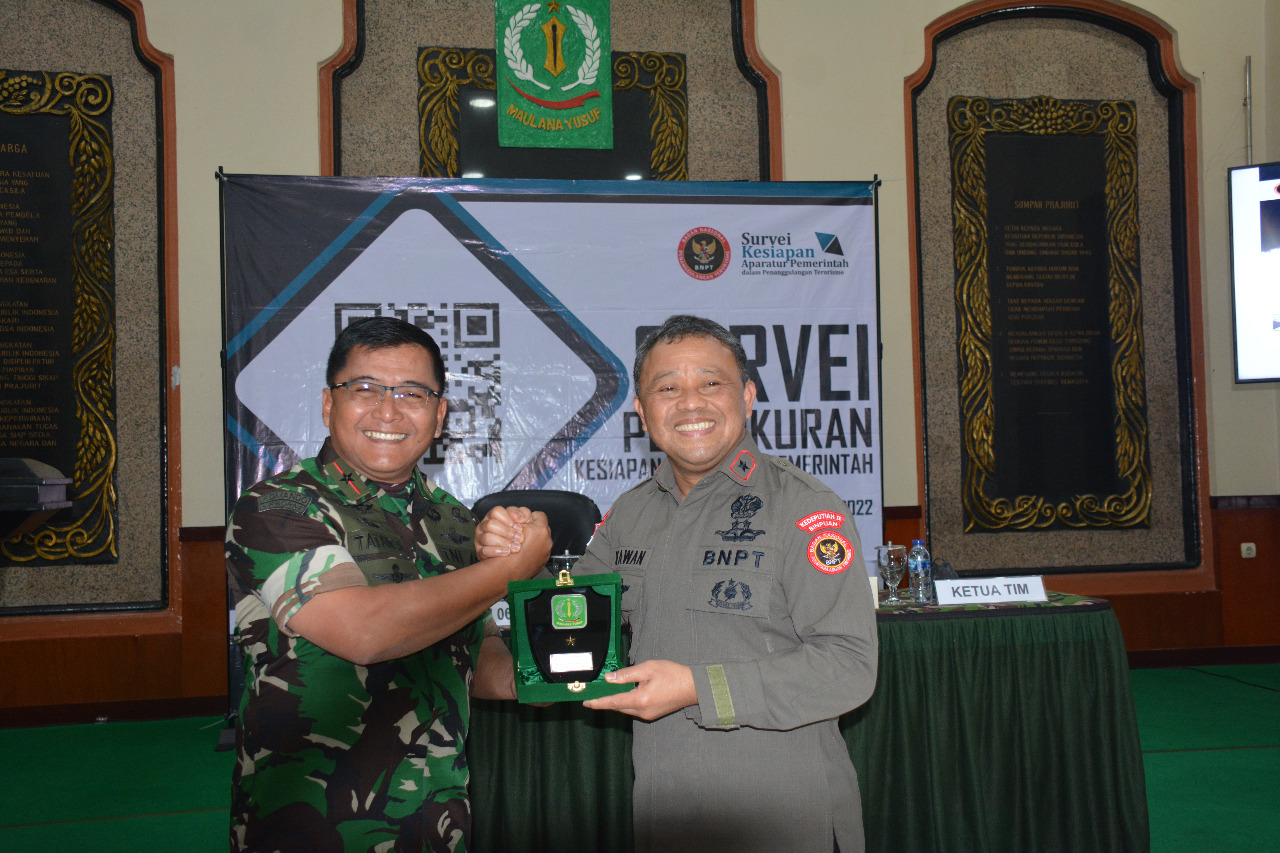 Brigjen TNI Tatang Subarna, berpesan kepada yang hadir agar informasi yang akan disampaikan oleh Tim Survei dari BNPT dapat dipahami oleh Prajurit Korem 064/MY serta untuk dapat memberikan informasi kepada prajurit lainnya supaya dapat meningkatkan kemampuan dalam pencegahan Tindak Pidana Terorisme.