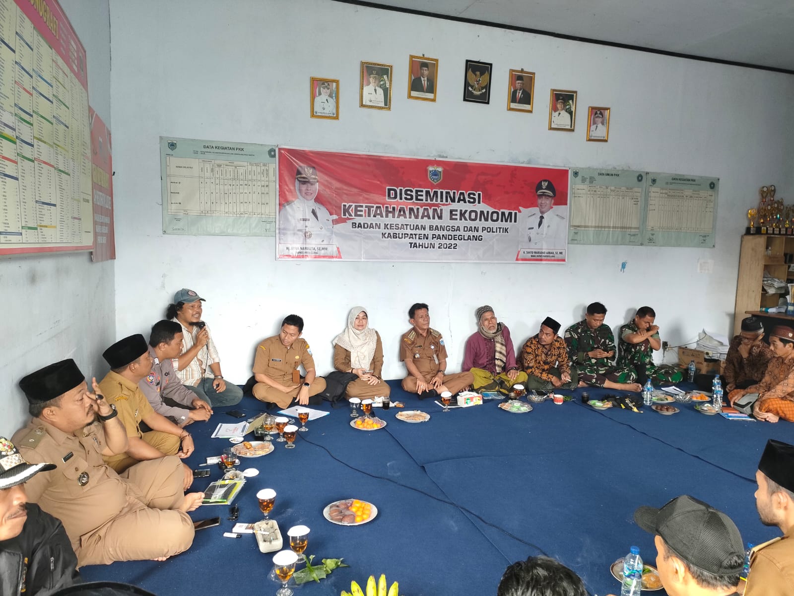 PANDEGLANG, (suarasiber.co.id) – Bidang Ketahanan Ekonomi Sosial Budaya Agama dan Organisasi Kemasyarakatan (Kesba Ormas), Badan Kesatuan Bangsa dan Politik (Kesbangpol) Kabupaten Pandeglang, menggelar diseminasi ketahanan ekonomi di Kecamatan Mekarjaya dan Mandalawangi, Kabupaten setempat, Selasa – Rabu, (27-28/12/2022). Kegiatan yang melibatkan 50 warga Desa Pareang, Kecamatan Mekarjaya, serta 25 warga Desa Cikumbueun dan 25 warga Ramea, Kecamatan Mandalawangi ini, juga dihadiri camat dan para kepala desa di dua kecamatan tersebut.