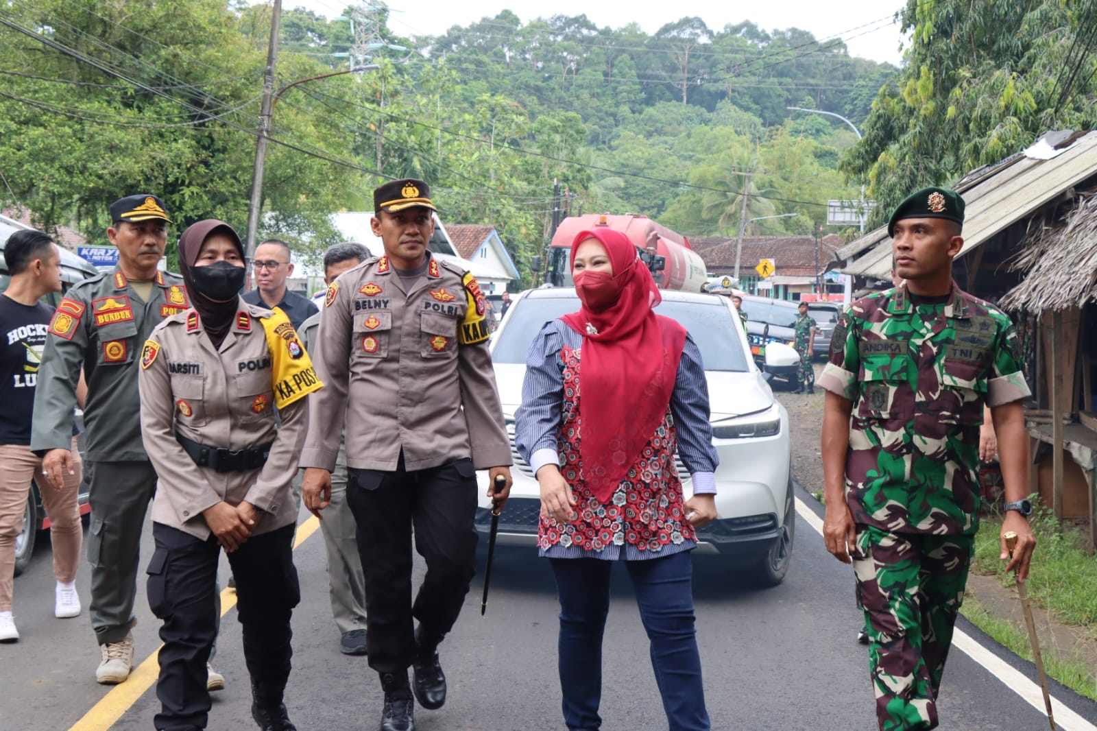 Kegiatan ini dipimpin oleh Bupati Pandeglang Hj. Irna Narulita didampingi Kapolres Pandeglang AKBP Belny Warlansyah, Danyon 320 Letkol Inf Andika Suseno, Kepala Dinas PUPR Asep Rahmat, dan Kadishub Kabupaten Pandeglang Atang Suhana.