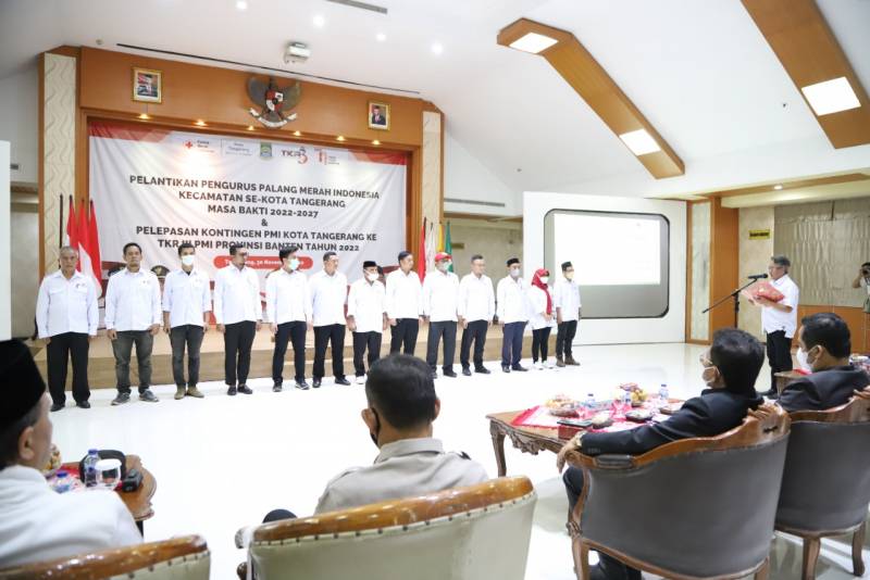 KOTA TANGERANG, (suarasiber.co.id) – Palang Merah Indonesia (PMI) Kota Tangerang melantik ratusan pengurus PMI Kecamatan se-Kota Tangerang. Pelantikan dihadiri Wali Kota Tangerang, Arief R. Wismansyah dan Wakil Wali Kota, Sachrudin, di Aula Al-Amanah, Pusat Pemerintahan Kota Tangerang, Rabu (30/11/2022).