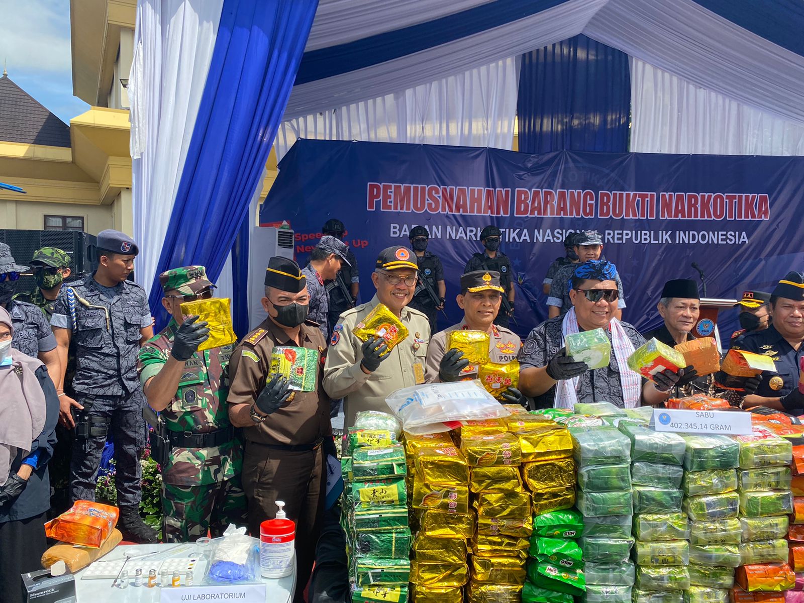 BNN RI melakukan pemusnahan barang bukti narkotika berupa sabu seberat 402,34 Kg, ganja seberat 198,05 Kg dan ekstasi sebanyak 105.290 butir. Disamping itu petugas juga memusnahkan prekursor narkotika berupa tablet sebanyak 990 butir, serbuk seberat 1,80 Kg, cairan sebanyak 8 botol serta Neo Napacin sebanyak 31 bungkus.