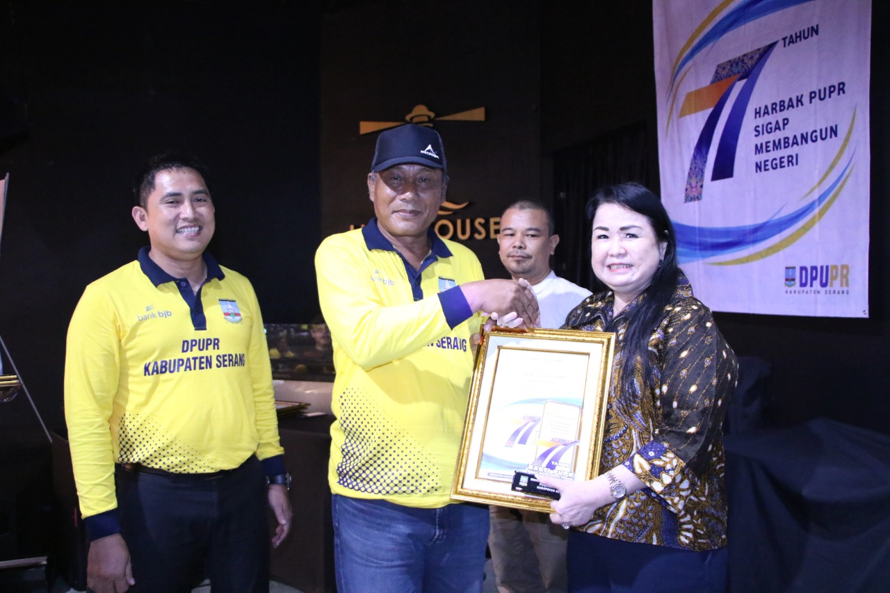 Pada Peringatan Hari Bhakti PU ke-77 Tahun 2022 tersebut DPUPR Kabupaten Serang memberikan penghargaan kepada Kementerian PUPR dan sejumlah rekanan atau pihak ketiga proyek pembangunan jalan. Secara simbolis, penghargaan diberikan oleh Wabup Serang Pandji Tirtayasa.(*d2n)