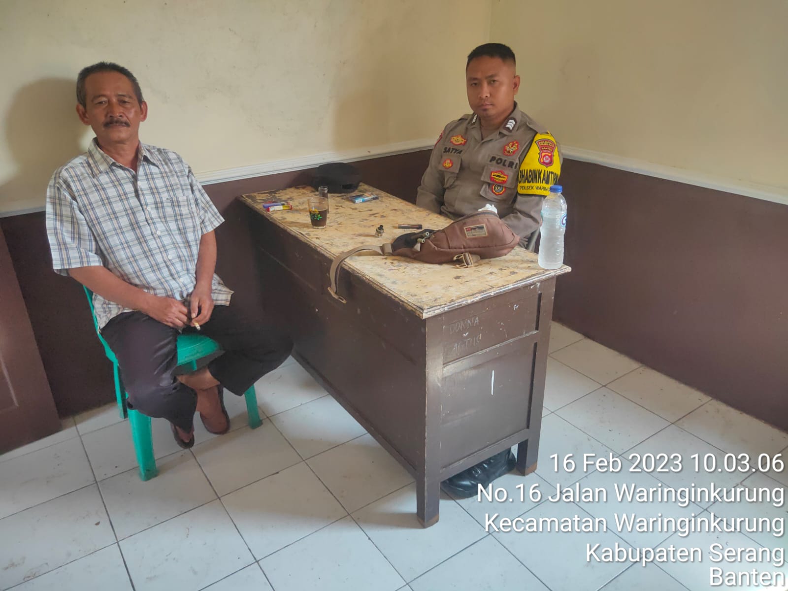 POLRESTA SERKOT | Bhabinkamtibmas Polsek Waringinkurung Brigpol Satya Budiyaksa, S.H melakukan sambang dan silaturahmi dengan warga binaannya di desa Sukadalem Kecamatan Waringinkurung sembari menyampaikan pesan – pesan kamtibmas, Kamis (16/02/2023).