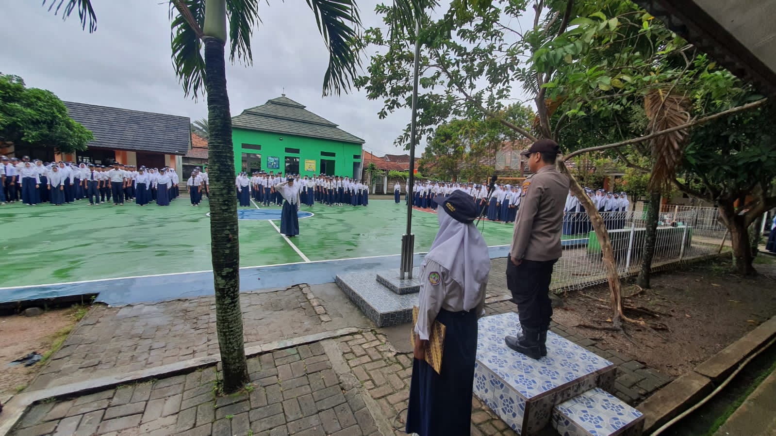 POLRESTA SERKOT_ Kanit Binmas Polsek Taktakan Polresta Serkot Bripka Martin Hasan SH, menjadi pembina upacara di SMPN 21 Kec. Taktakan Kota Serang menyampaikan pesan-pesan Kamtibmas dan Kenakalan Remaja kepada siswa-siswi, Staf dan dewan guru di SMPN 21 Kec Taktakan Kota Serang