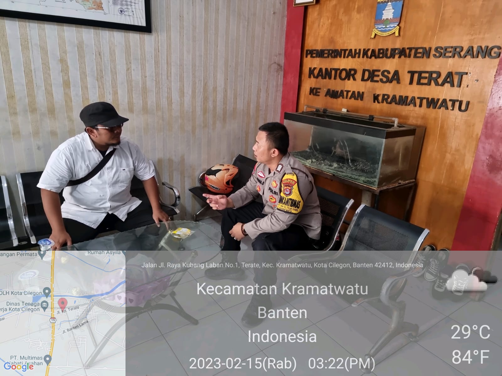 Bhabinkamtibmas Desa Terate Bripka Angga Polsek Kramat watu Polresta serang kota melaksanakan patroli dialogis sekaligus sambang dengan staf desa Terate Kec. Kramatwatu Kab. Serang berikan pesan-pesan Kamtibmas.