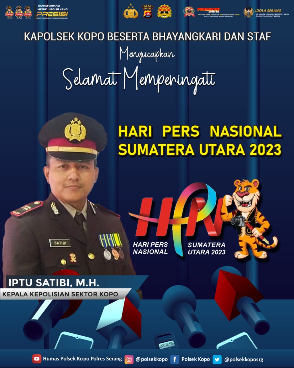 Sekali lagi, kami segenap keluarga besar Polsek Kopo mengucapkan Selamat Hari Pers Nasional 2023, semoga semakin sukses, eksis dan profesional dalam menyampaikan pemberitaan dan informasi-informasi kepada masyarakat yang tepat dan akurat,” tandas ,” IPTU Satibi, M.H.