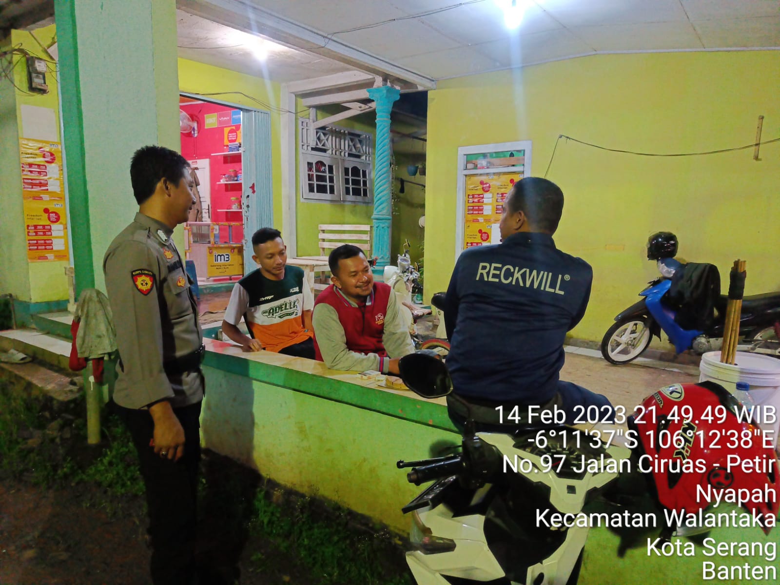 POLRES SERKOT__Demi menjaga situasi Kamtibmas yang aman di wilkum Polsek Walantaka Polres Serkot selalu patroli dialogis dengan warga lingkungan Nyapar Impres Kecamatan Walantaka Kota Serang, Pada Selasa malam (14/2/2023)