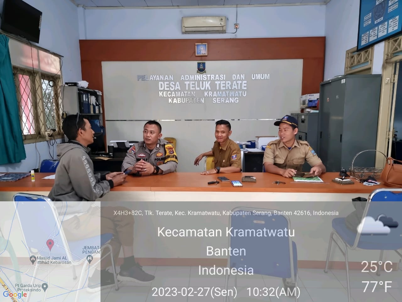 POLRESTA SERKOT | Bripka Angga Bhabinkamtibmas polsek Kramatwatu Polresta Serkot Polda Banten melaksanakan giat sambang di Desa serdang kec. Kramatwatu Kab. Serang, Senin, (27/2/2023)