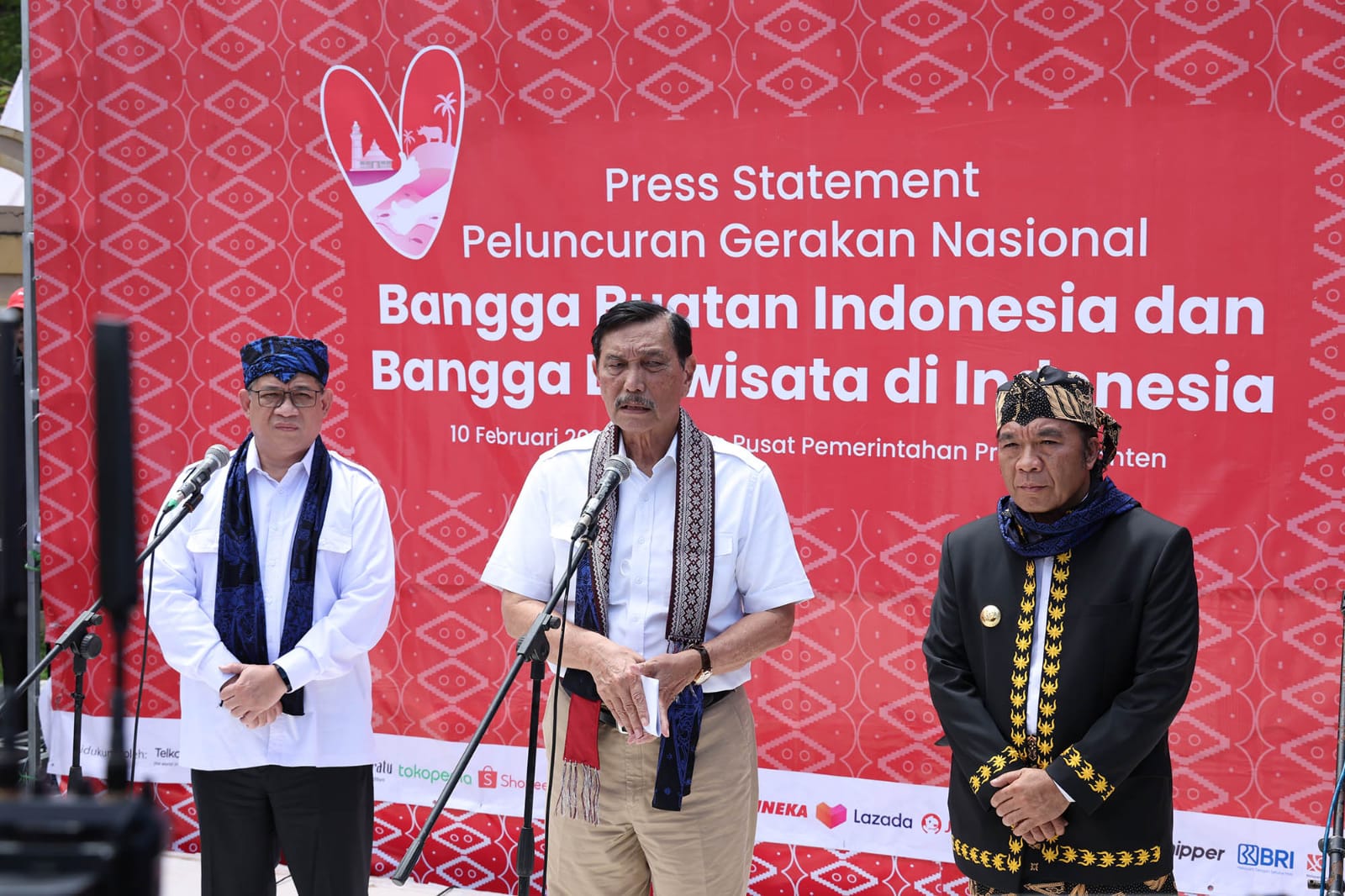 Dalam kesempatan itu, Menko Marves Luhut B Pandjaitan didampingi Penjabat (Pj) Gubenur Banten Al Muktabar meninjau stand-stand UMKM binaan Pemerintah Daerah, binaan OPD Pemprov Banten, TP PKK Pemprov Banten, Dharma Wanita Persatuan Pemprov Banten, Bank Indonesia, BUMN, BUMD dan Bank swasta. (BiroAdpim/Yudhi).