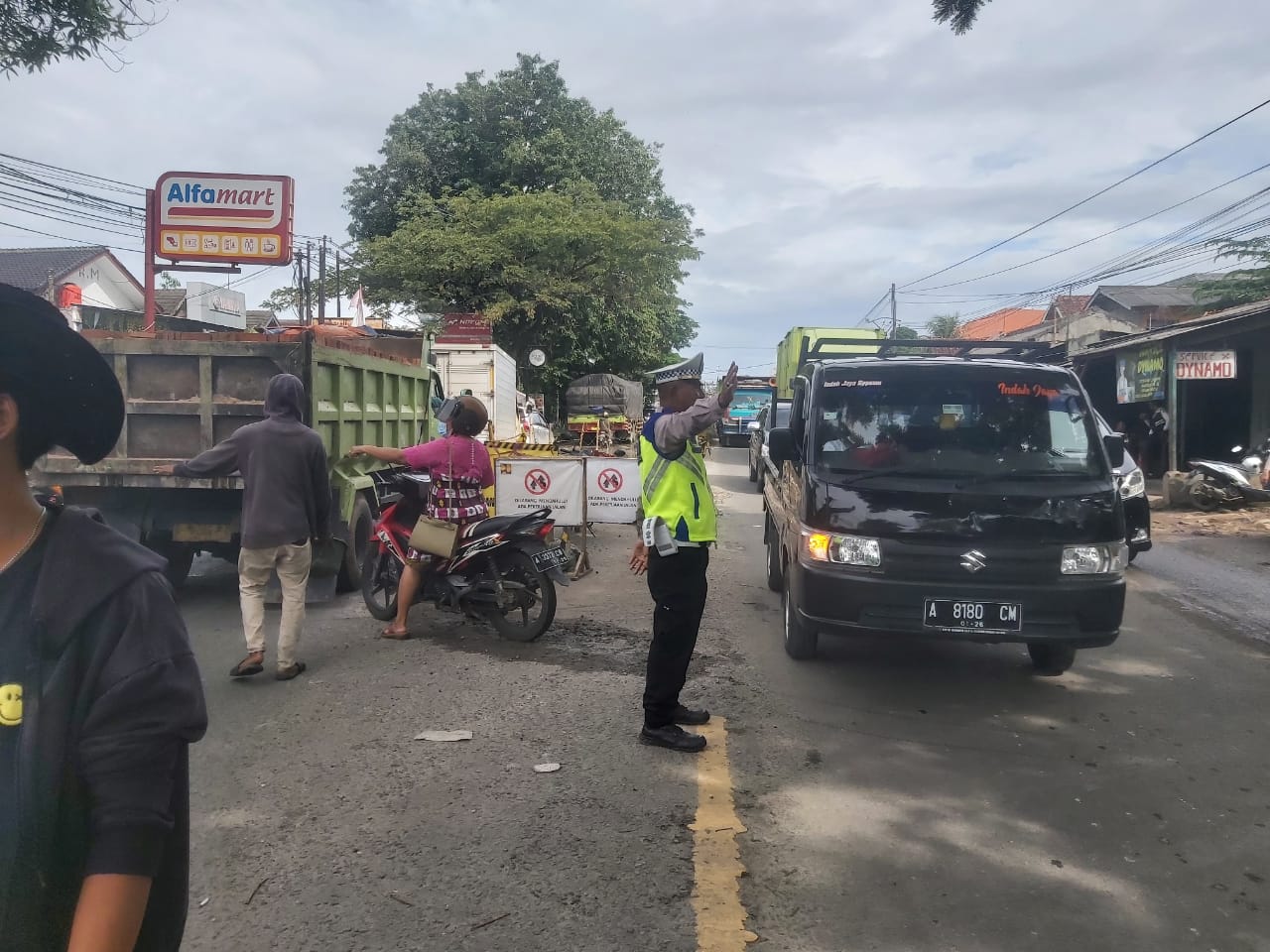 POLRESTA SERKOT | Anggota lalu lintas Polsek Kramatwatu Polresta Serkot Polda Banten melaksanakan pengaturan arus lalu lintas, Selasa (21/2/2023).
