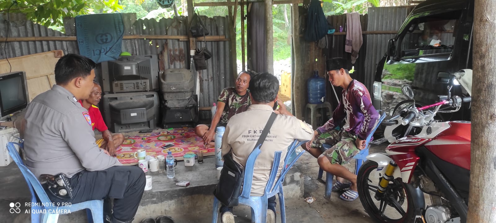 Laksanakan Anjasana dalam rangka menjalin situasi kamtibmas yang kondusip Pak Bhabin berkunjung dengan pak wardi pemilik Rongsok, sapa warga dalam menyampaikan himbauan kamtibmas demi terciptanya harkamtibmas yang aman dan kondusip.