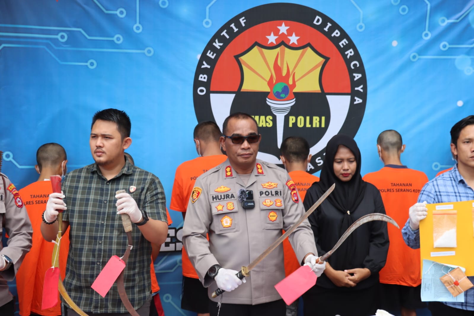 “Hari ini kami merilis kasus tawuran yang terjadi di Kampung Cijawa Kecamatan Serang beberapa hari lalu. Ditangkap oleh anggota Reskrim Polresta Serkot,” Kata Wakapolresta Serkot AKBP Hujra Soumena S.I.K, M.H saat menyampaikan rilis di Polresta Serkot, Jumat (10/02/2023).