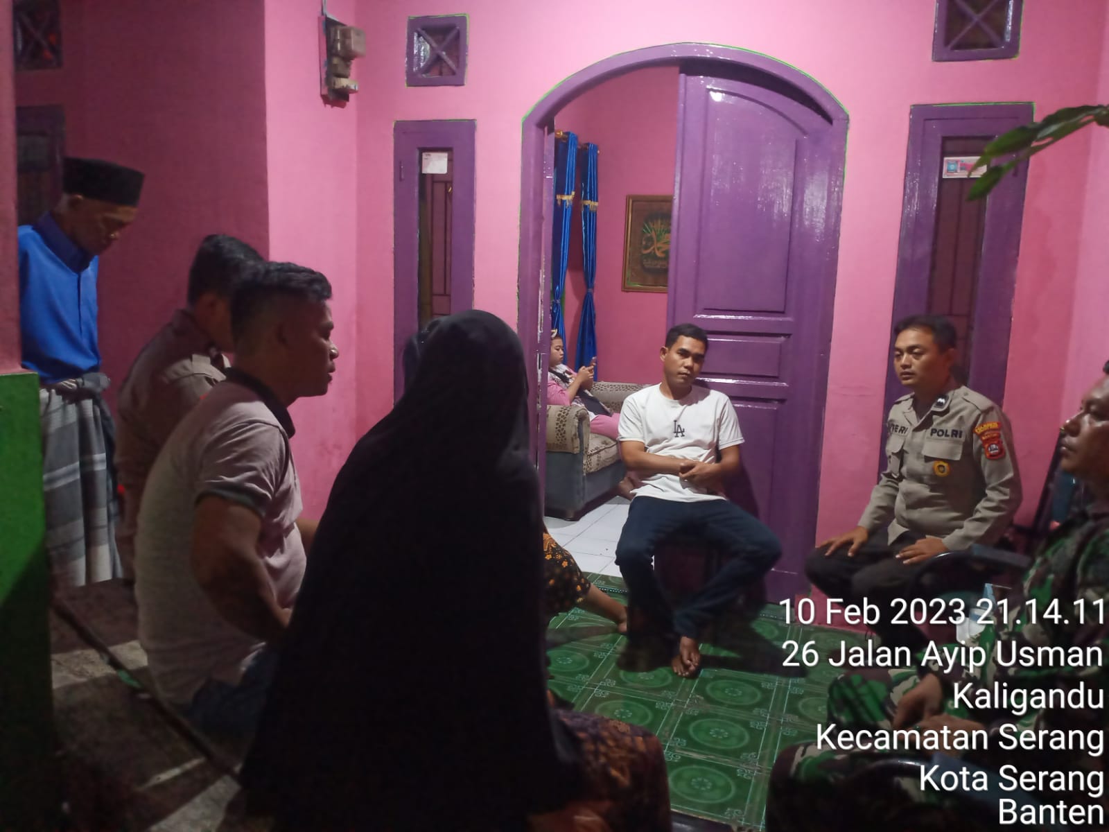 POLRESTA SERKOT – Anggota Bhabinkamtinbmas Polsek Serang Polresta Serkot BRIPKA Feri dan BRIPTU Rokhim melakukan giat sambang patroli malam di Pemukiman warga Kecamatan Serang Kota Serang, Sabtu (11/02).