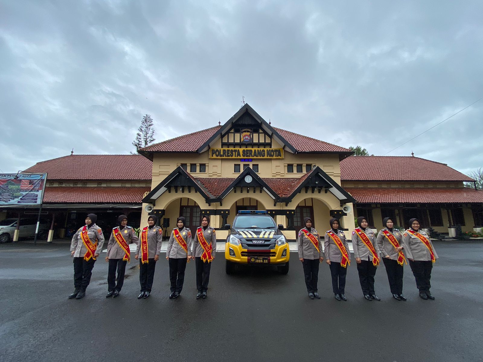 Dengan menggunakan mobil patroli milik Polresta Serkot, para personel polwan berkeliling di ruas kota Serang kemudian berhenti di beberapa masjid untuk berjaga dan memberikan pelayanan humanis.