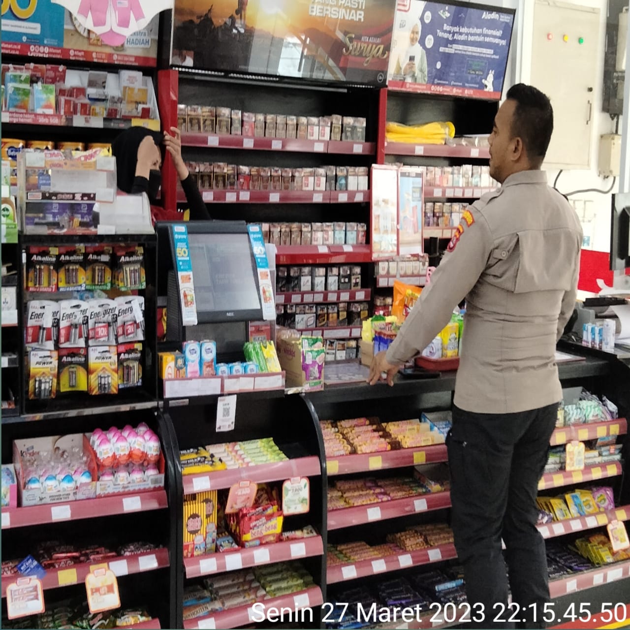 POLRESTA SERKOT| Personil Polsek Pabuaran Polresta Serkot Polda Banten Bripka M. Agus Tomi bersama anggota melaksanakan Patroli dialogis dengan mendatangi Alfamart maupun indomart pastikan aman memberikan himbauan Kamtibmas serta mengingatkan kembali himbauan dan edukasi protokol kesehatan kepada pelayan untuk selalu menerapkan 5 M Protokol Kesehatan, Selasa,(28/03/2023)