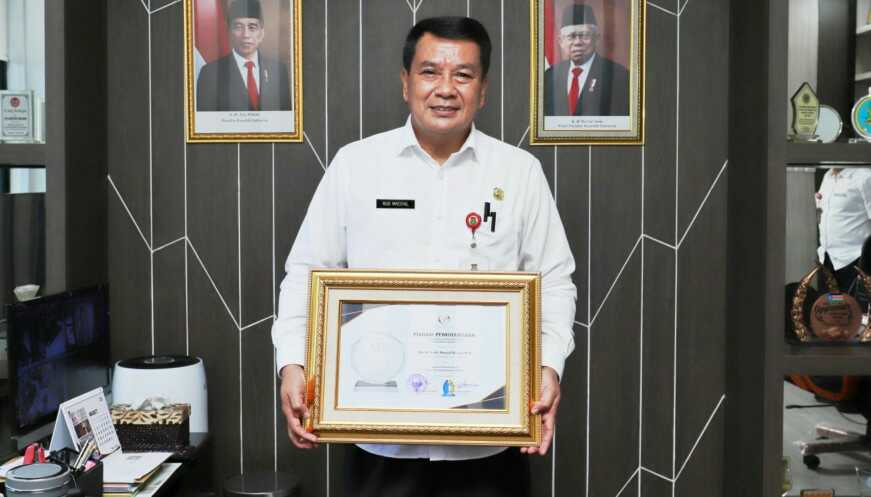 Sekda Kabupaten Tangerang Moch Maesyal Rasyid mengucapkan terima kasih atas penghargaan yang diterima diwakili sebelumnya oleh Kepala Dinas Komunikasi dan Informatika (Diskominfo) Nono Sudarno, pada Rabu (1/03/2023) saat menerima langsung piagam tersebut dari Kepala Diskominfo.