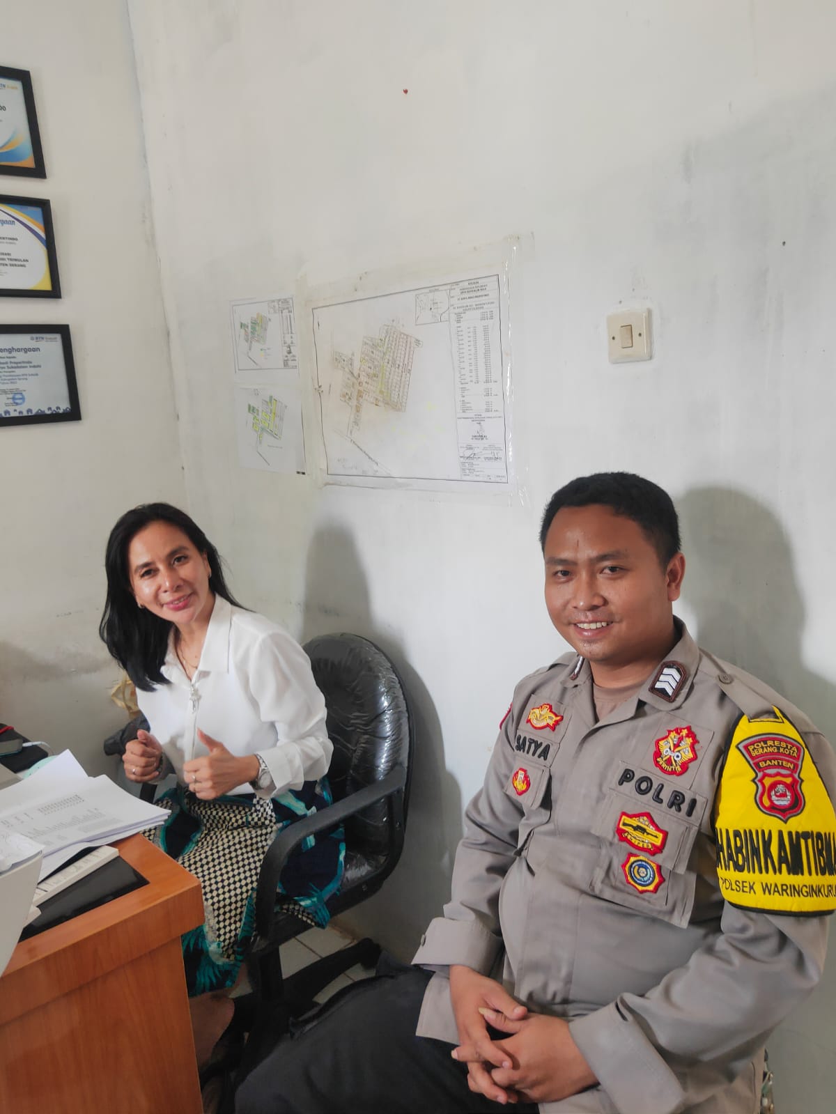 POLRESTA SERKOT | Dalam upaya memberikan rasa aman kepada masyarakat Bhabinkamtibmas Polsek Waringinkurung Polresta Serkot untuk Desa Sukadalem Brigadir Satya Budiyaksa, S.H melakukan upaya dalam mencegah gangguan kamtibmas, seperti melaksanakan giat sambang di Kantor Pemasaran Perumahan yang bertempat di Desa Sukadalem kecamatan Waringinkurung Kabupaten Serang untuk bertemu langsung dengan karyawan perumahan yang ada di desa Binaannya. Senin (27/03/2023).