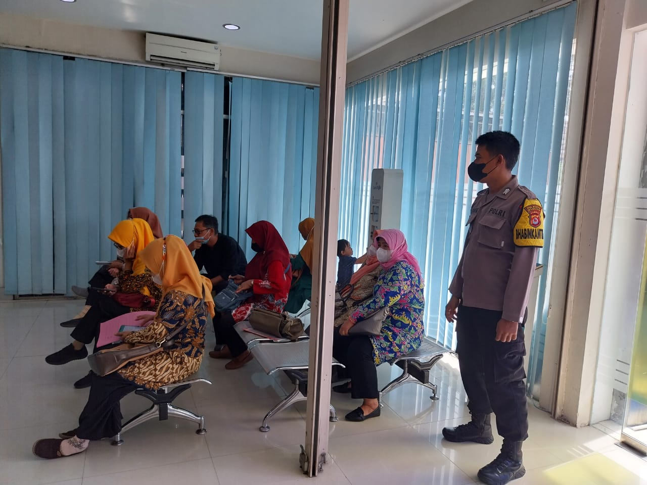 POLRESTA SERKOT |Anggota Polsek Baros Bripka Erwin Dwi Agustian melaksanakan pengamanan terhadap obyek vital yakni Bank BJB KCP Baros, Senin (27/03/2023) Pagi.