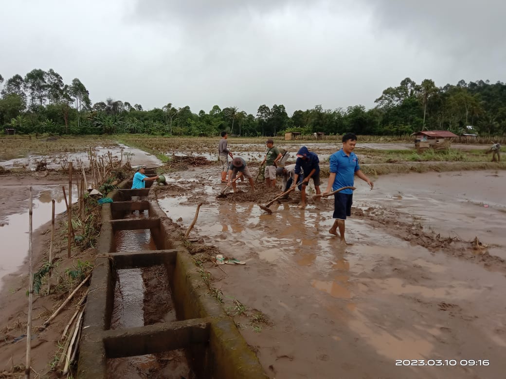 LAHAT, (suarasiber.co.id) – Sehari pasca banjir Kepala Desa Farizal Yulihar berserta perangkatnya dan anggota BPD di bantu masyarakat melakukan gotong royong membersihkan lumpur dan sampah di tengah jalan usaha tani desa Pamah Salak, Kecamatan Jarai, Kabupaten Lahat, Sum-Sel. Jum’at.(10/3/2023)
