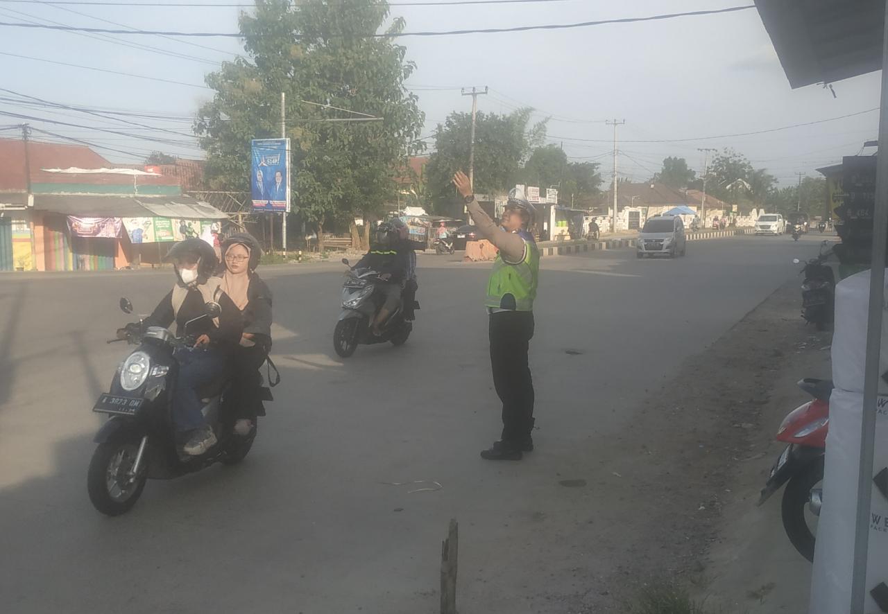 POLRESTA SERKOT | Personil lalu lintas Polsek Cipocok Jaya Polresta Serang Kota melaksanakan pengaturan arus lalu lintas, Kamis (23/3/2023).