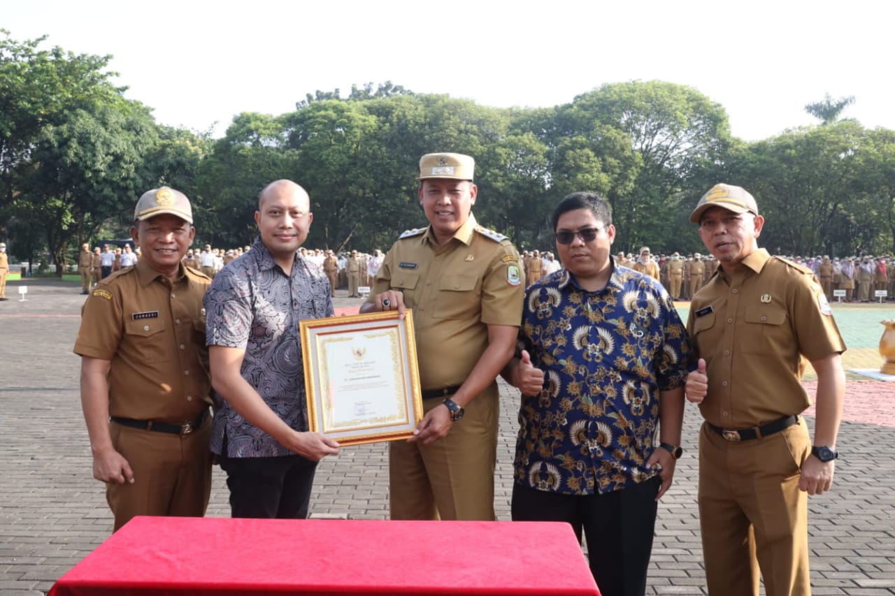 1. Penyerahan penghargaan terbaik dalam bidang peningkatan penggunaan produk dalam negeri kategori Kabupaten/Kota tingkat nasional yang telah diterima oleh Plt. Wali Kota Bekasi oleh Presiden RI, saat apel piala tersebut diserahkan kepada Bagian Pengadaan Barang Jasa, Inspektorat Kota Bekasi, dan Dinas Perdagangan dan Industri Kota Bekasi.