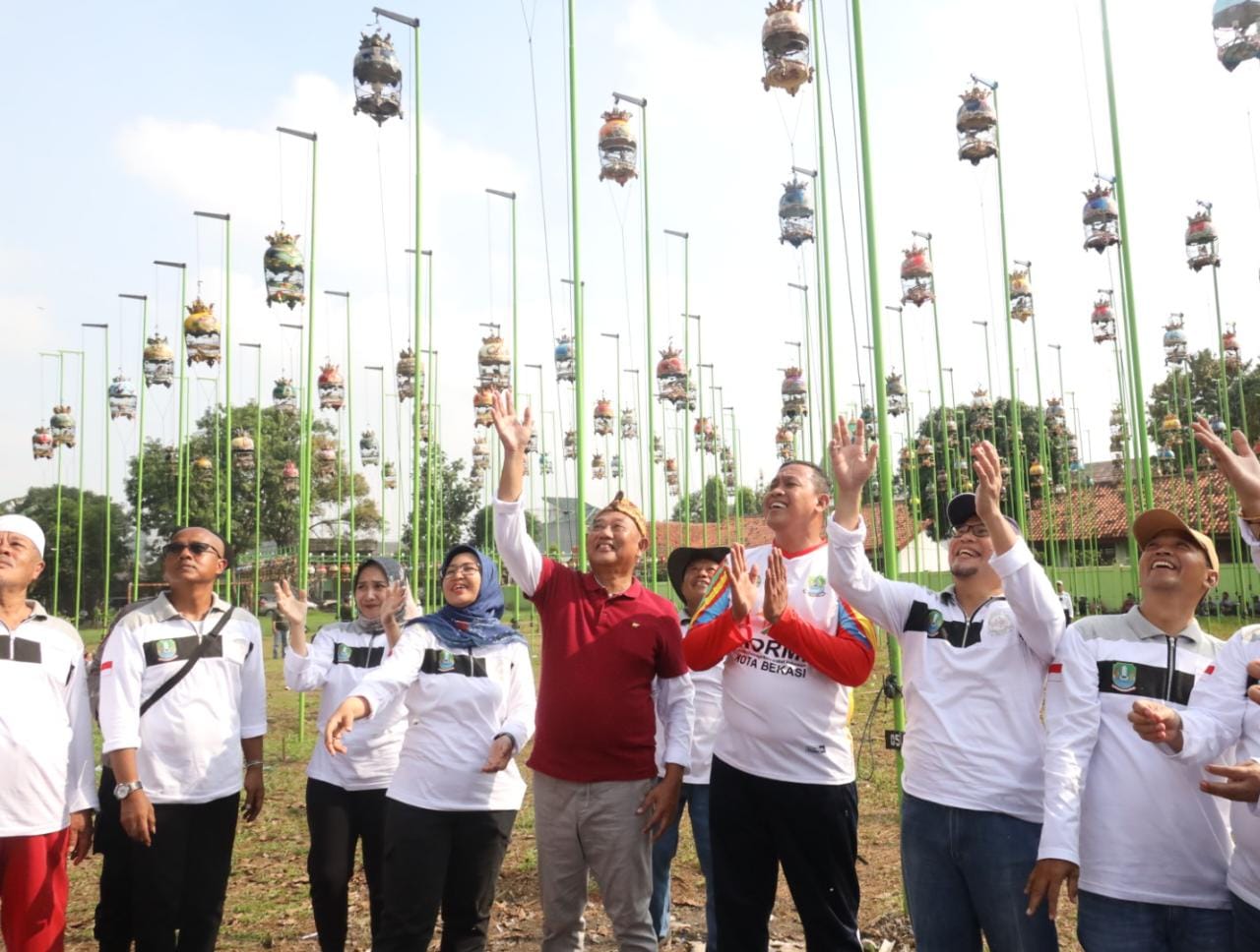 Usai sambutan, Tri Adhianto bersama Kepala Disparbud,Camat serta panitia melepas sebuah burung ke alam bebas sebagai tanda bahwa lomba perebutan piala bergilir Wali Kota Bekasi Konkurs Suara Alam Burung Perkutut dibuka.