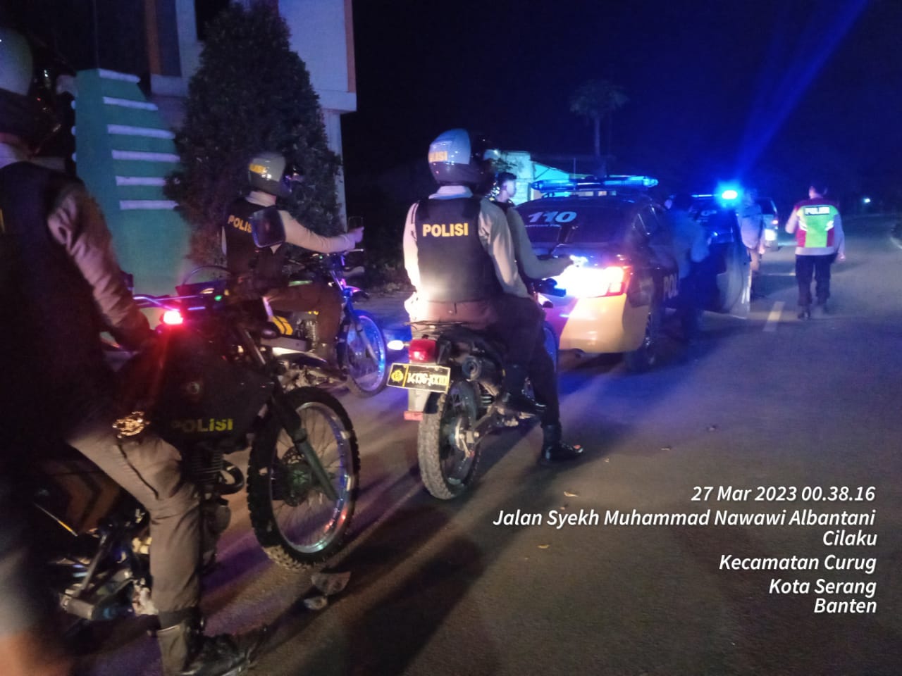 POLRESTA SERKOT_ Personel Gabungan Zona II polresta serang Kota yaituPolsek Curug,baros dan walantaka ditambah satuan Briplmobda Dan Ditsamapta Polda Banten dipimpin Kapolsek Curug AKP DEDI R,S.H gelar Patroli dijalan Raya Syekh Muhammad Nawawi Al-Bantani Kecamatan Curug Kota Serang antisipasi balap liar,tawuran dan kejahatan lainya.