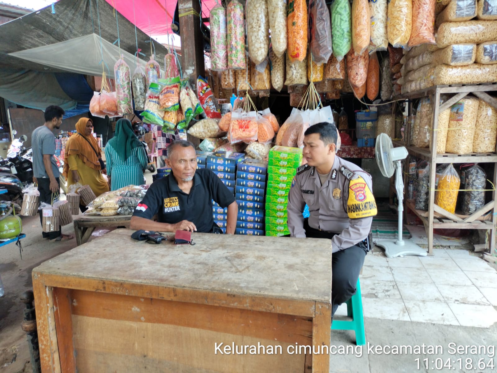 POLRESTA SERKOT, (suarasiber.co.id) – Bhabinkamtibmas Polsek Serang Polresta Serkot Polda Banten Bripka Ari Ardiansyah sampaikan pesan Kamtibmas kepada pedagang di pasar tradisional di Pasar Rau Kelurahan Cimuncang Kecamatan Serang Kota Serang, Senin (03/04)