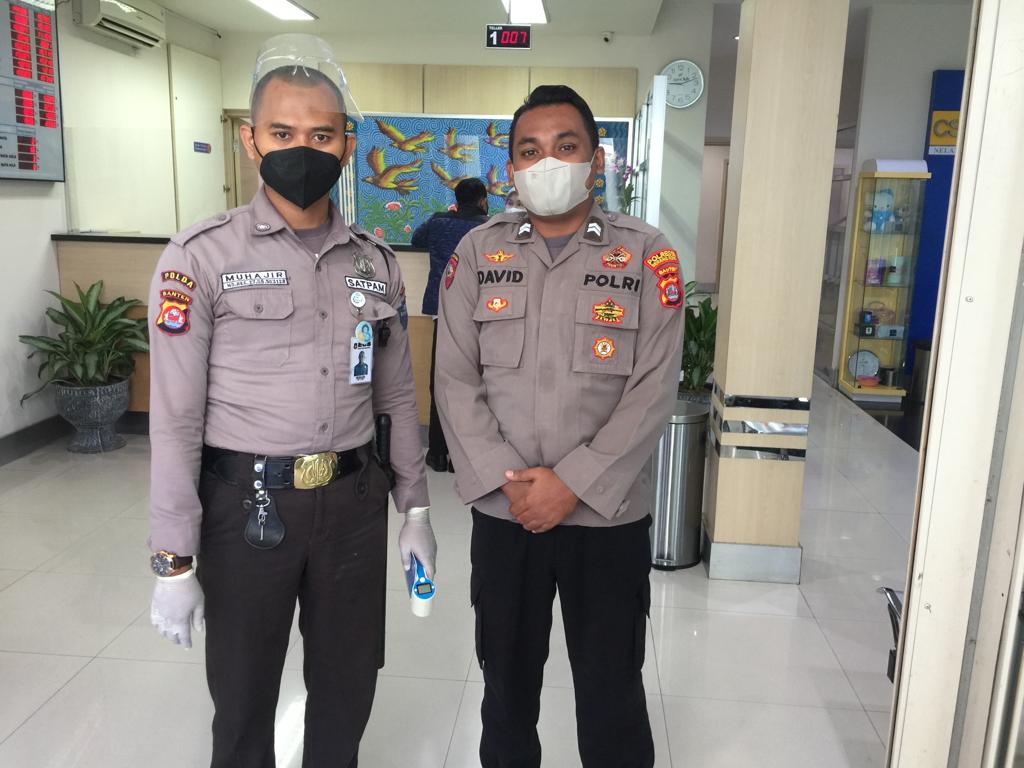 POLRESTA SERKOT |Anggota Polsek Baros Briptu David melaksanakan pengamanan terhadap obyek vital yakni Bank BJB KCP Baros, Senin (03/04/2023) Pagi.
