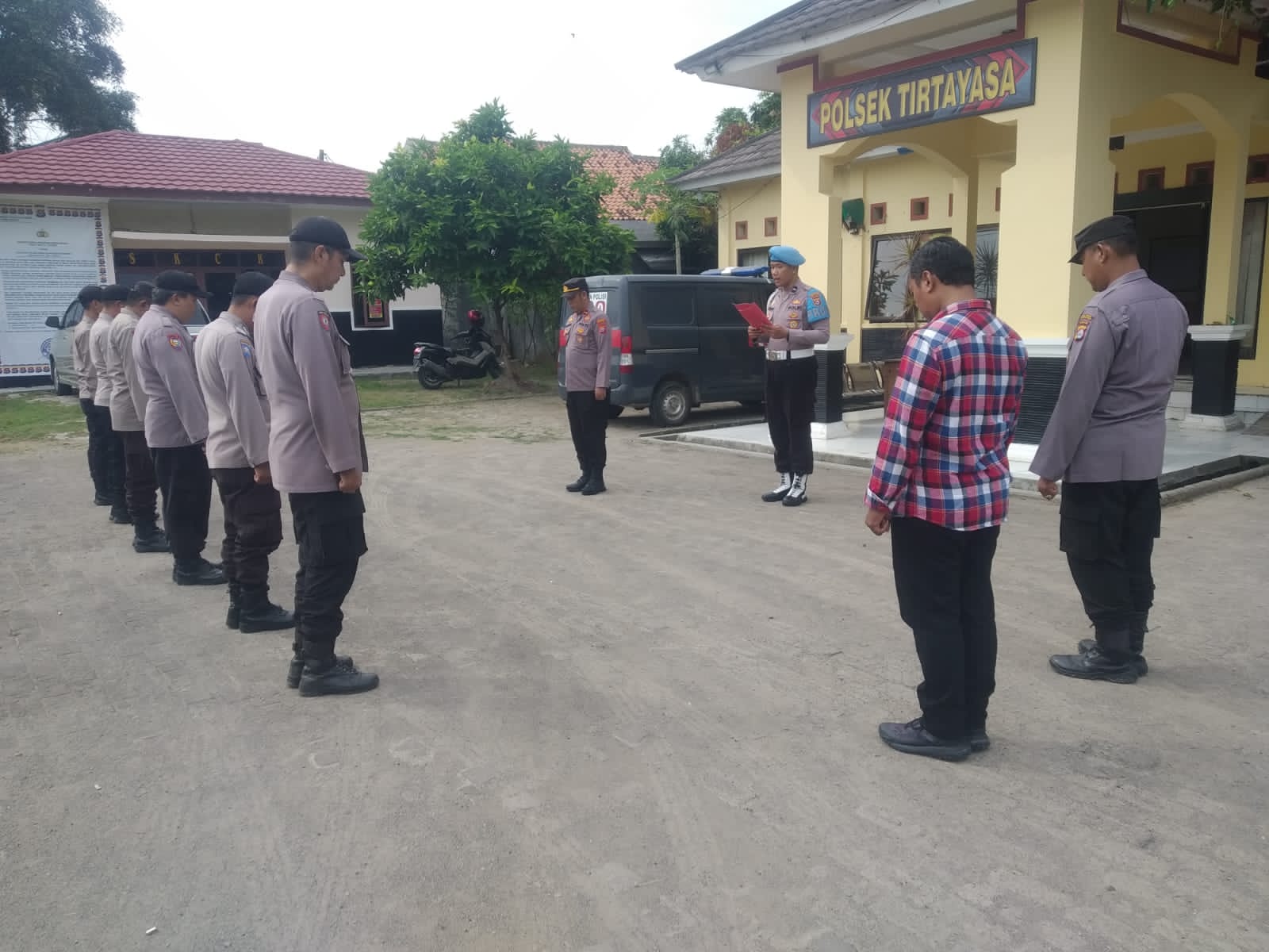 Apel Pagi ini dipimpin oleh Wakapolsek Tirtayasa Polres Serang Ipda Bambang Wirawan di halaman Mapolsek Tirtayasa.