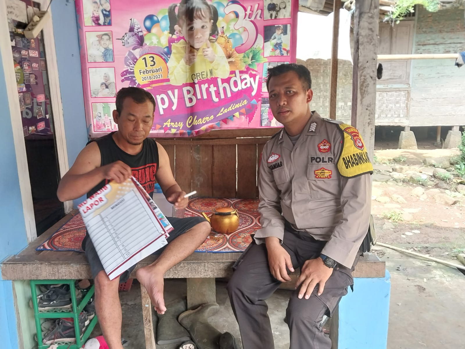 POLRESTA SERKOT _Guna mengantisipasi gangguan Kamtibmas, Bhabinkamtibmas Polsek Baros Polresta Serkot Polda Banten Bripka M. Nur Iskandar melaksanakan sambang dan berdialog bersama masyarakat dengan berikan himbauan Kamtibmas kepada masyarakat di Ds. Tamansari Kec. Baros Kab. Serang, Sabtu (27/05/2023) Sore.