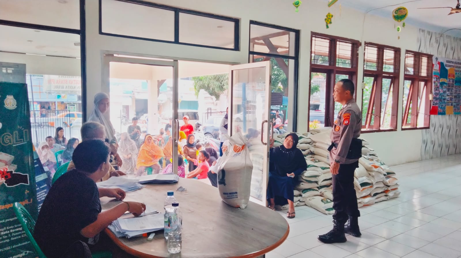 POLRESTA SERKOT_ Bhabinkamtibmas Polsek Serang Polresta Serkot untuk Desa binaan Kelurahan Kota Baru Bripka Amit Suhendar hadiri atau monitoring penerimaan Bantuan Pangan di Kelurahan Kota Baru, Selasa (16/05)