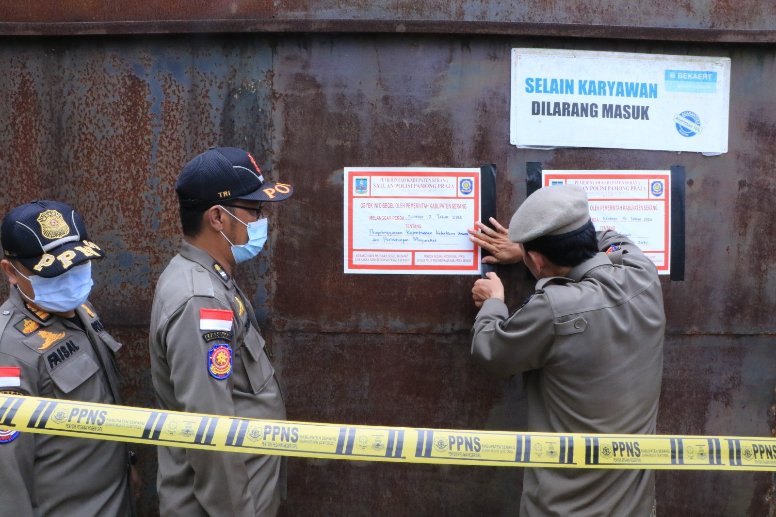 Pantauan di lokasi, sekitar pukul 10.00 WIB sekitar 40 Petugas Satpol PP Kabupaten Serang berkumpul di lokasi ternak ayam dengan memulai apel serta di bacakan berita acara penyegelan terlebih dahulu. Tanpa ada perlawanan pihak pengelola ternak ayam seluas lebih dari 1 hektare yang berdiri sejak 7 tahun terakhir, Satpol PP melakukan penyegelan dengan menggembok dan memasang garis Penyidik Pegawai Negeri Sipil (PPNS).