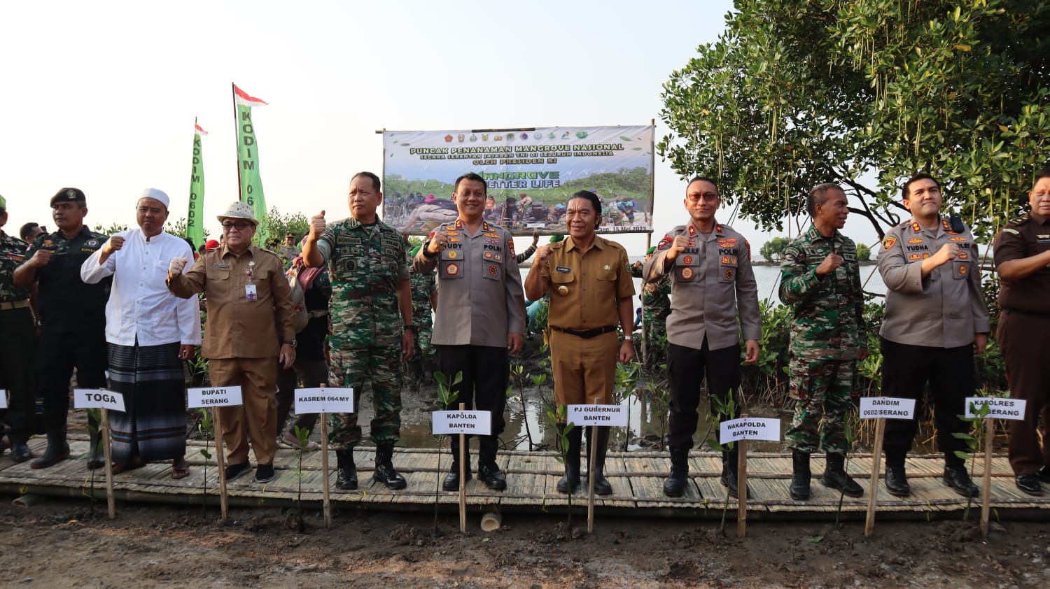 Serang, (suarasiber.co.id) – Kapolres Serang AKBP Yudha Satria, S.H., S.I.K., menghadiri pelaksanaan penamaan mangrove serentak oleh jajaran TNI di seluruh Indonesia. Senin, (15/05/2023) pukul 15.00 WIB.