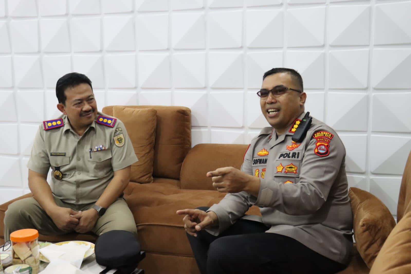 Kapolresta serkot yang di dampingi para pju polresta serkot diterima Kepala BPN kota serang Ir. Trias Wiri A Hadi.