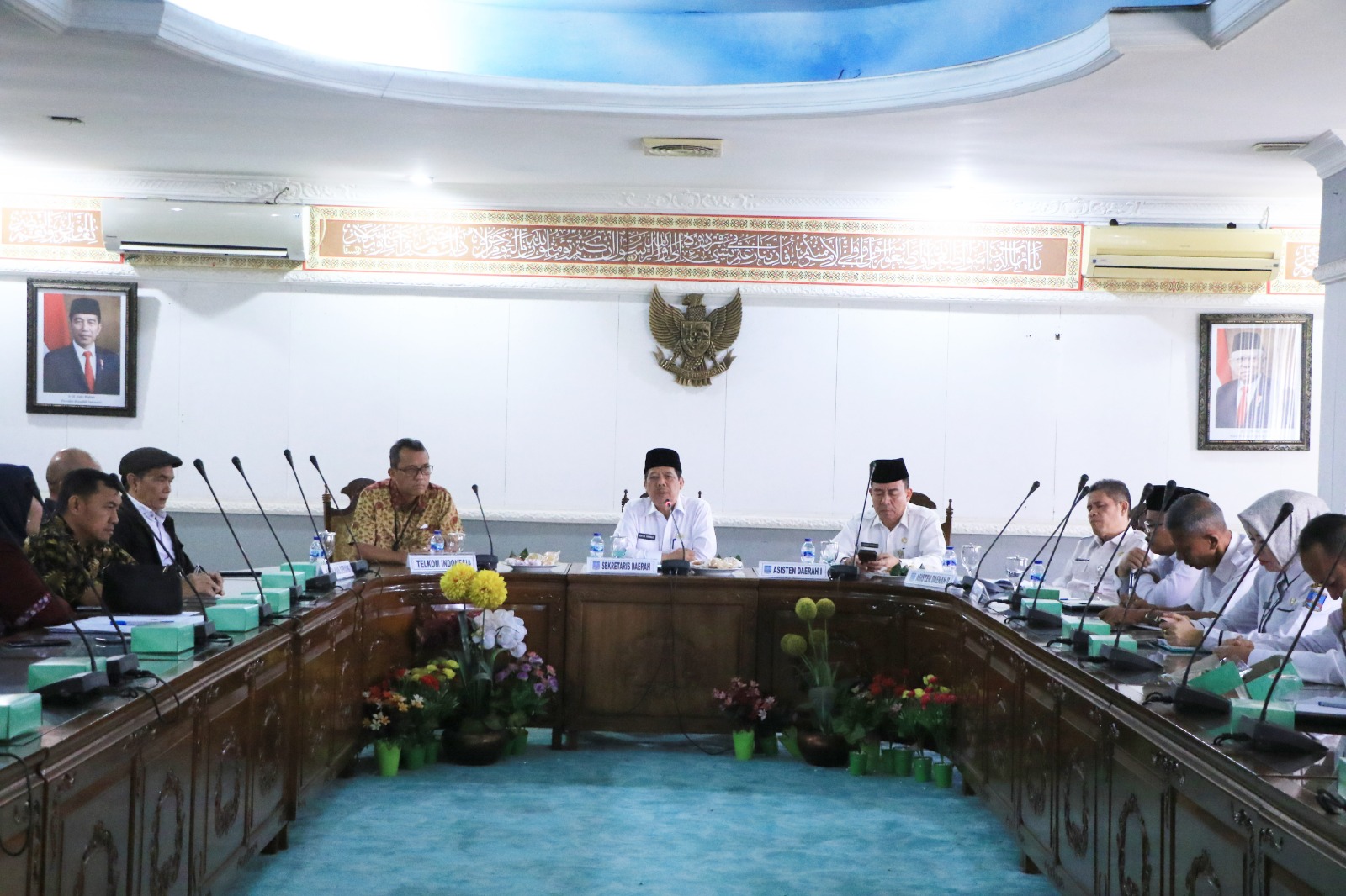 Turut hadir pada rapat koordinasi Asisten Daerah (Asda) I Bidang Administrasi Pemerintahan dan Kesra Nanang Supriatna, Asda II Bidang Perekonomian dan Pembangunan Hamdani, Kepala DPMD Haryadi, Kabag Perekonomian Wawan, Sekretaris Diskoumperindag Shinta Asfilian Harjani, dan Kepala Bidang Aptika pada Diskominfosatik Ari Arumansyah. Kemudian General Manager PT Telkom Indonesia Adang Widodo, Manager Bisnis PT Telkom Indonesia Witel Banten Wibandoko beserta jajaran dan Ketua Dewan Pertimbangan KADIN Kabupaten Serang Didi Supriyadi.