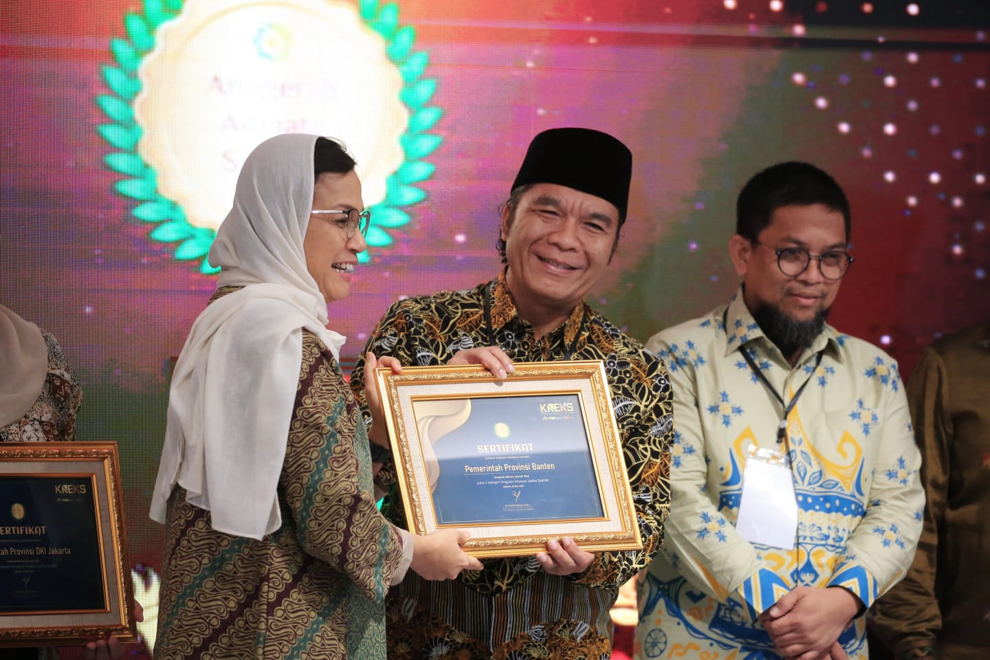 JAKARTA, (suarasiber.co.id) – Pemerintah Provinsi Banten meraih dua penghargaan dalam Anugerah Adinata Syariah 2023. Pemprov Banten raih penghargaan pada kategori Pengembangan Pendidikan dan Kebudayaan Ekonomi Pesantren serta kategori Program Inkubasi Usaha Syari’ah. Anugerah diserahkan oleh Menteri Keuangan Republik Indonesia Sri Mulyani Indrawati.
