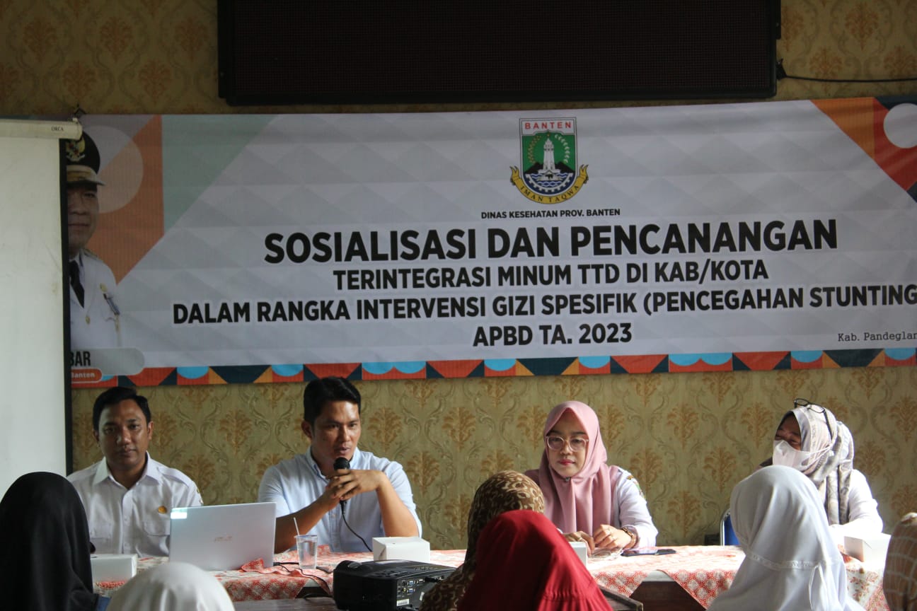 Pandeglang, ( suarasiber.co.id ) – Dinas Kesehatan Provinsi Banten lakukan sosialisasi terintegrasi minum Tablet Tambah Darah (TTD) di Kab/Kota dalam gerakan intervensi Gizi Spesifikasi (Pencegahan Stunting) di Kantor Kecamatan Cimanuk, Pandeglang, Banten. pada Rabu, (24 Mei 2023).