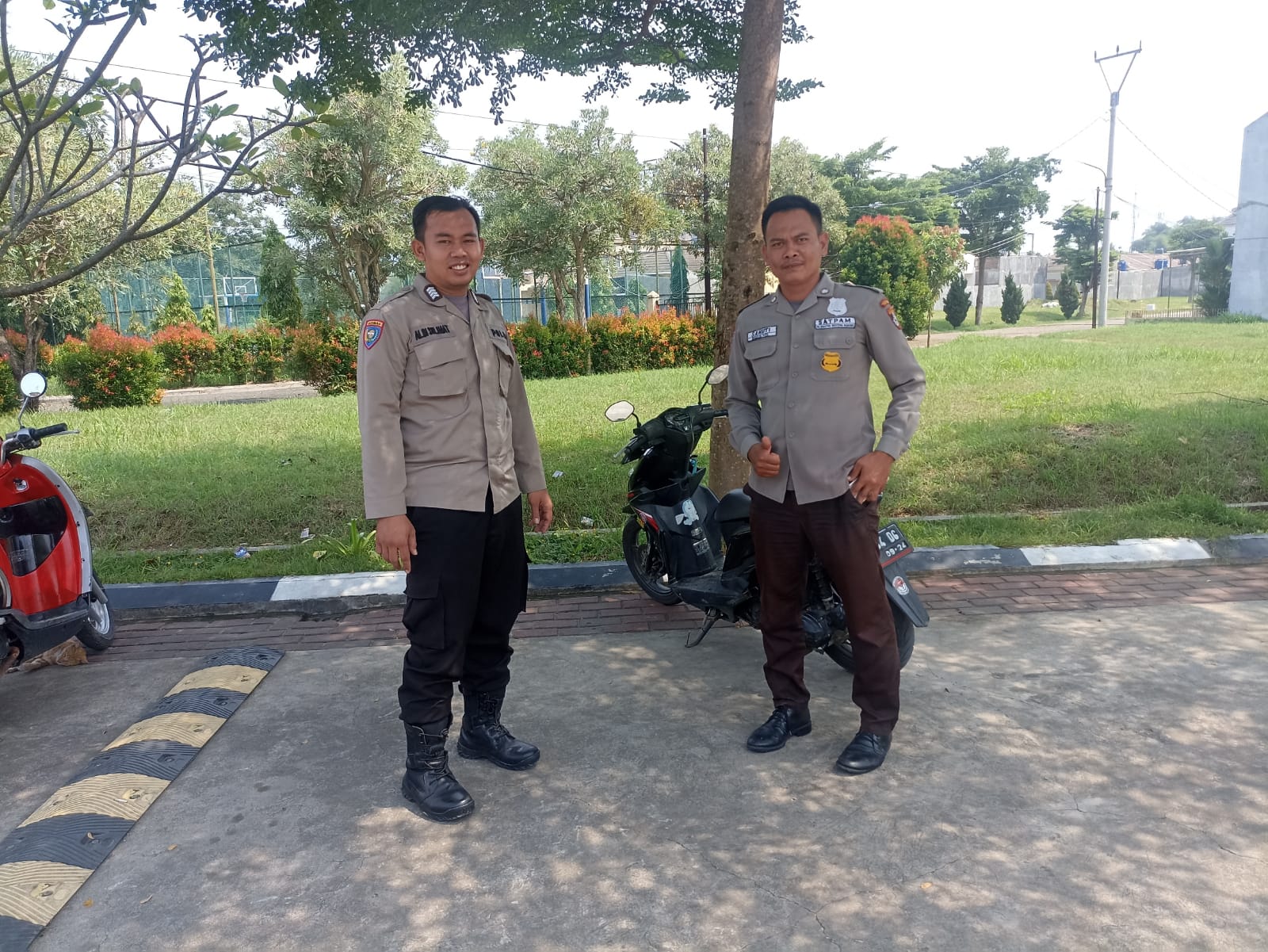 Bripka Aldi bhabinkamtibmas Polsek Kramatwatu Polresta Serkot melaksanakan patroli di desa binaan yaitu desa Kramat kec.kramatwatu bersilaturahmi dengan security perumahan serta memberikan arahan Kamtibmas