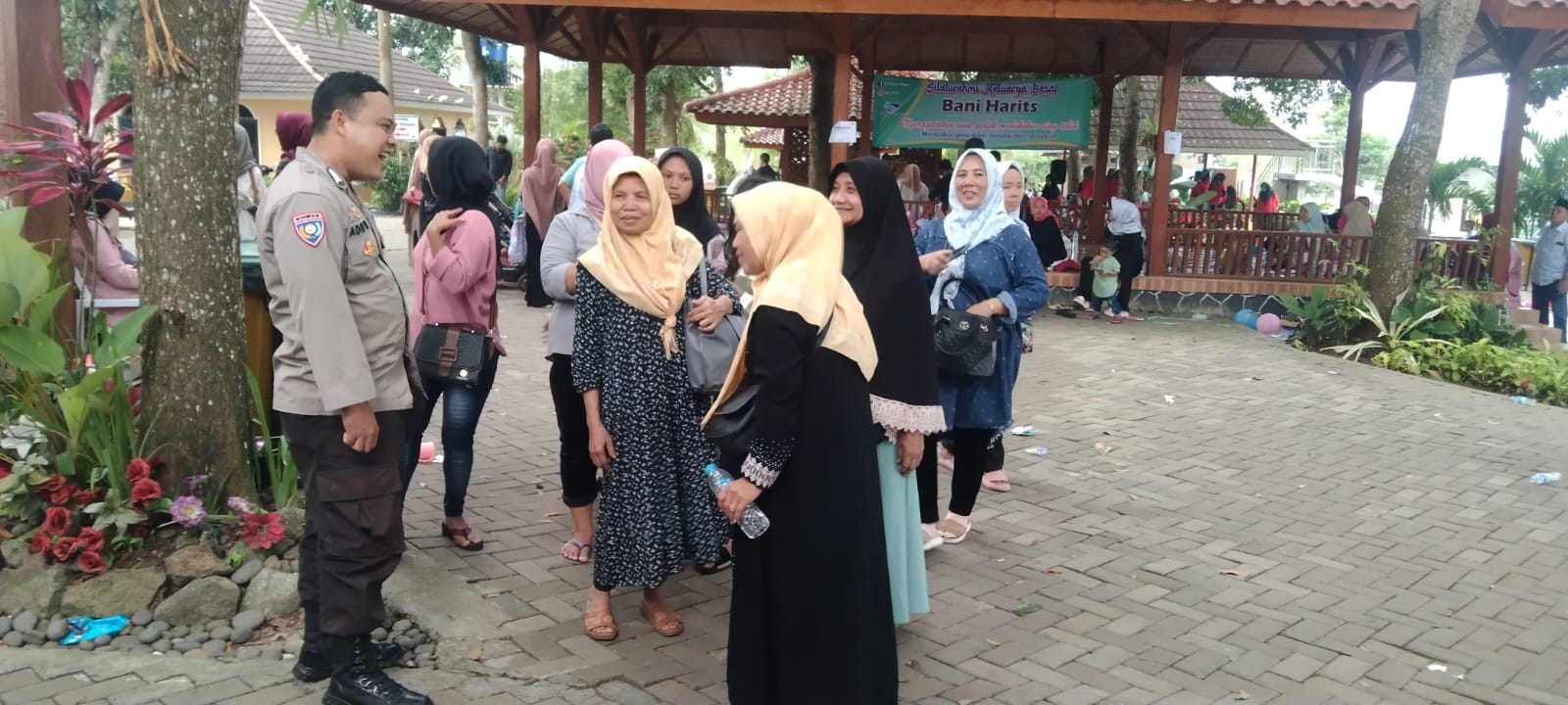POLRESTA SERKOT_ Personil Piket Patroli Polsek Curug Polresta Serkot Polda Banten Bripka Adin M dan Bripka Aris S.H menyampaikan pesan-pesan Kamtibmas kepada pengunjung tempat wista rekreasi MBS yang berlokasi Dilnk Cidehenh Kec curug Kota Serang