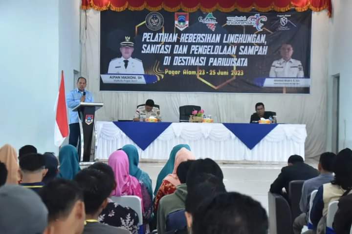 PAGAR ALAM, (suarasiber.co.id) – Pemerintah Kota (Pemkot) Pagar Alam melalui Dinas Pariwisata Kota Pagar Alam berikan pelatihan kebersihan lingkungan dan pengelolaan sampah di destinasi pariwisata di Kota Pagar Alam, kepada puluhan penggiat pariwisata Kota Pagar Alam, pada Jum’at (23/06/2023), di Aula Hotel & Villa Gunung Gare Kota Pagar Alam.