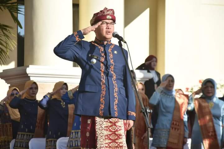 Walikota Pagar Alam Alpian Maskoni bertindak sebagai inspektur upacara peringatan Hari Ulang Tahun (HUT) Kota Pagar Alam ke-22 Tahun 2023, bertempat di Halaman Kantor Wali Kota Pagar Alam, Rabu (21/06/2023).