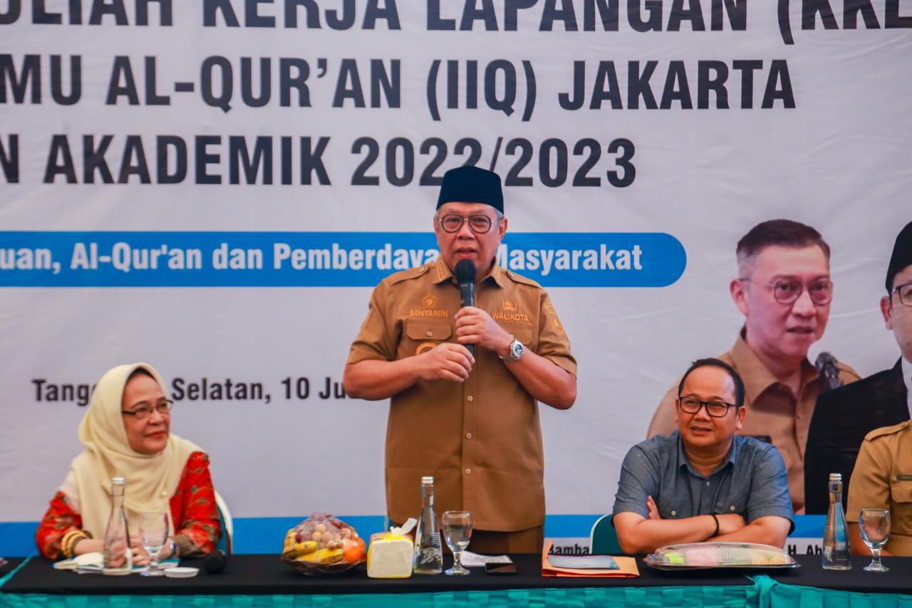 SETU, (suarasiber.co.id) – Wali Kota Tangerang Selatan, Benyamin Davnie berpesan kepada seluruh peserta Institut Ilmu Al-Qur’an (IIQ) Jakarta yang mengikuti Kuliah Kerja Lapangan (KKL) untuk mampu mengetahui gambaran umum dan cara bekerja di lingkungan Kota Tangsel. Apalagi Tangsel sebagai kota dengan pertumbuhan penduduk dan ekonomi yang terus meningkat.