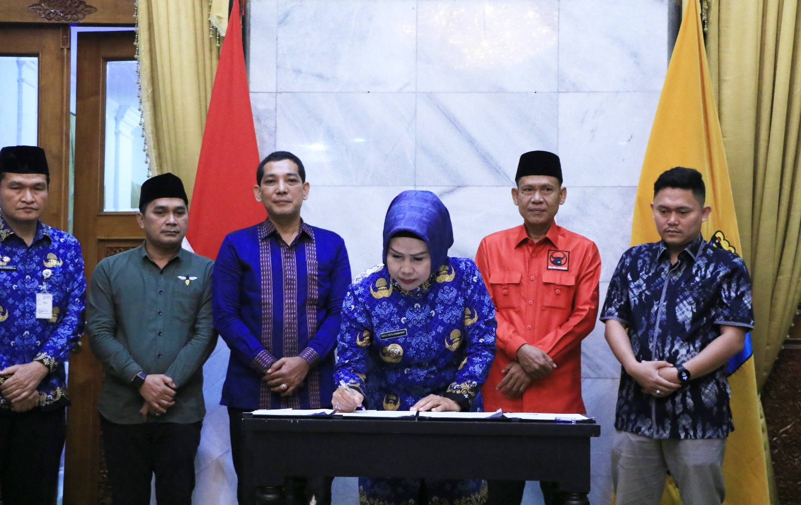 Serang, ( suarasiber.co.id ) – Bupati Serang Ratu Tatu Chasanah secara simbolis menyerahkan dan penandatanganan berita acara serah terima bantuan keuangan partai politik (parpol) tahun 2023 di Pendopo Bupati Serang pada Senin, 17 Juli 2023. Bantuan keuangan mengalami kenaikan 100 persen dibanding tahun lalu yang disalurkan melalui Badan Kesatuan Bangsa dan Politik (Bakesbangpol) Kabupaten Serang.